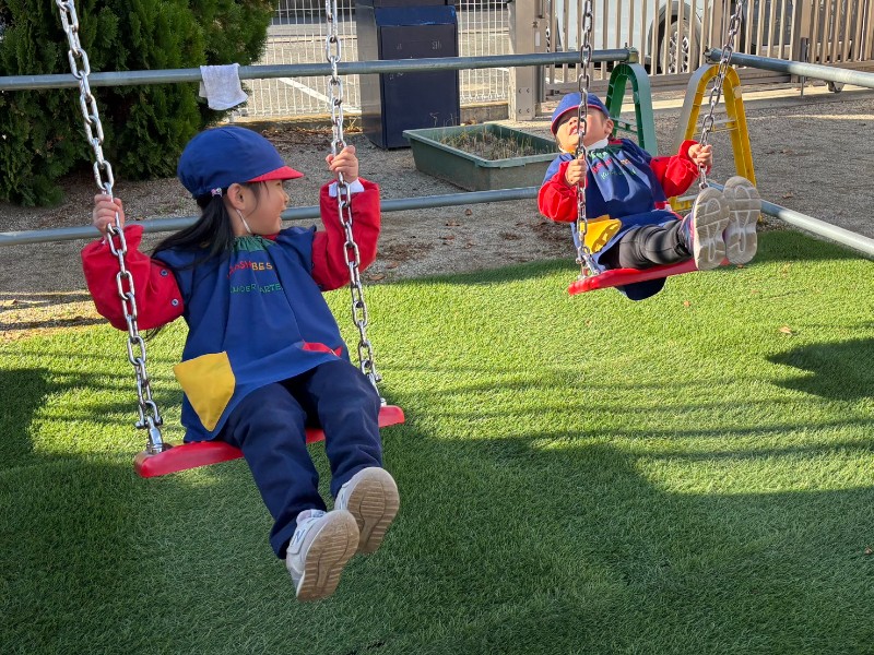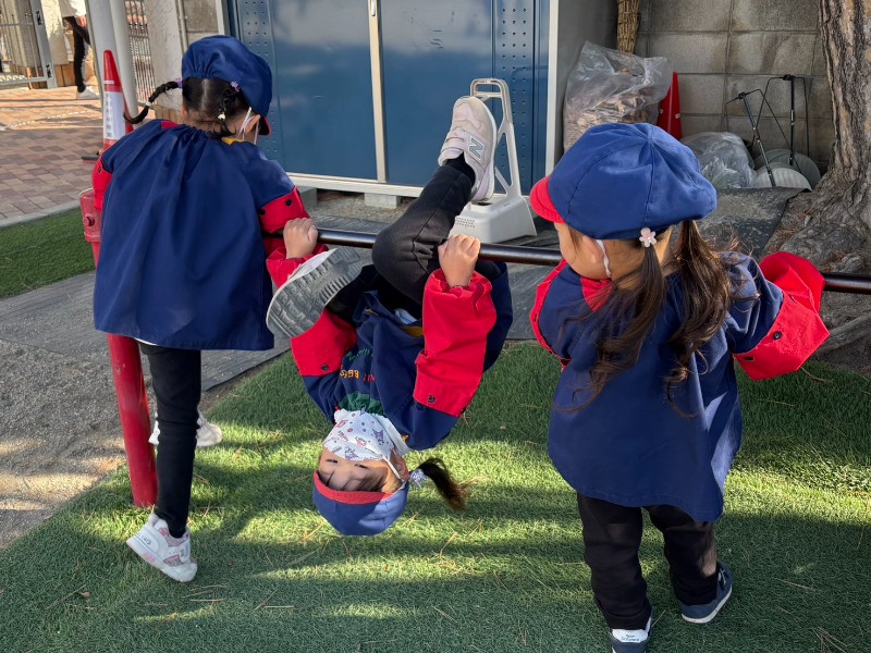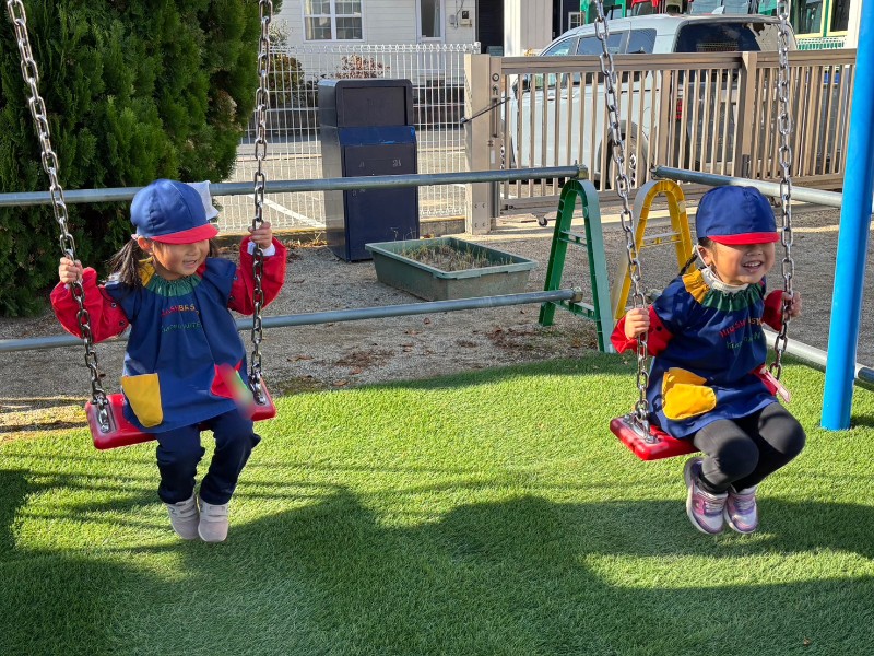 お友達と仲良くブランコを楽しんだり鉄棒を頑張るうさぎ組さんを発見♪沢山遊んで風邪に負けない体を作ろうね!《ゆま》