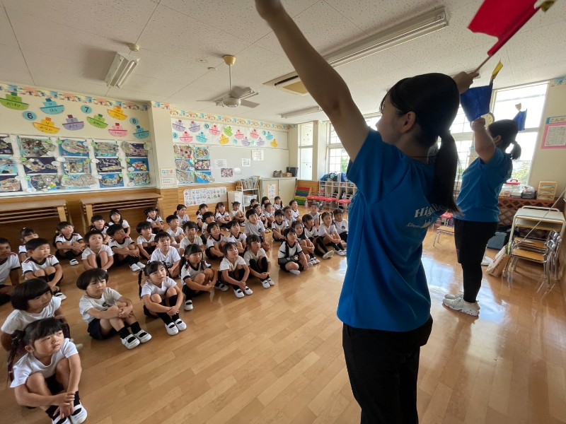 1学期の復習から始め、先生の踊りを見て、旗の振りのポイントや目線、力を入れる所などの話し合いを行いました。とてもワクワクしながら目を輝かせて練習しているのでこのやる気を止めずに、楽しみながら行っていきます!!✨