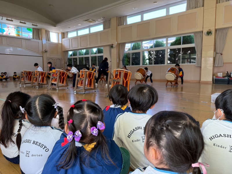 今日はぞう組さんの和太鼓を少しだけ見学…音だけではなく、ぞう組のお兄さんお姉さんの目の強さにみんな釘付けでした!