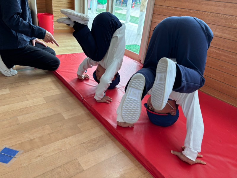改めて首倒立のポイントを教えてもらってから挑戦!教えてもらったことを意識しながらやってみたら合格者がたくさん出てきました!✨「出来なかったものを練習する!」としや先生からの言葉を大切にして全員合格を目指していこうね!!♥