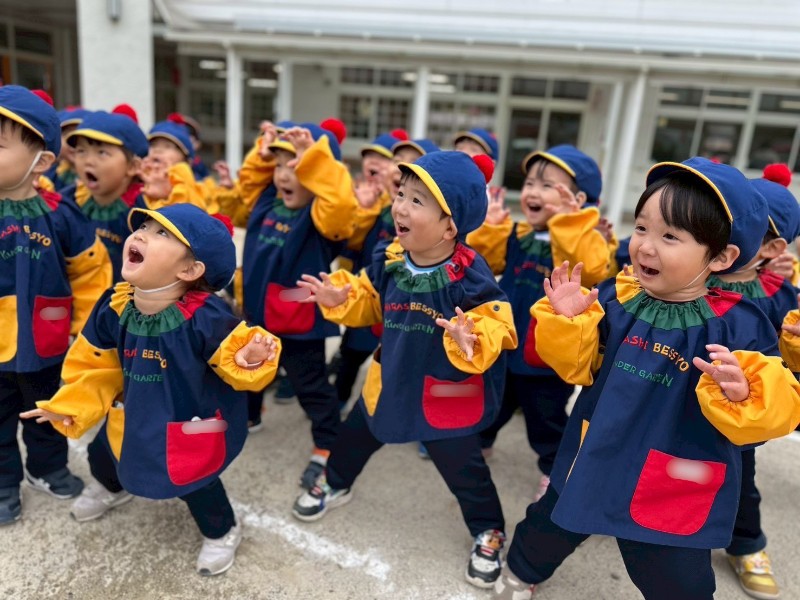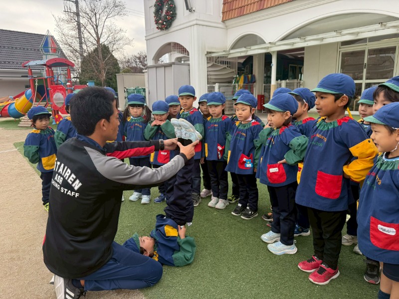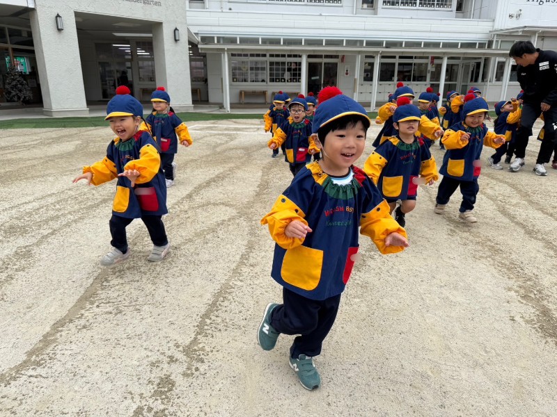 寒さに負けず、元気に園庭で体操教室!!走ったり動物の真似をしたりと、全身を使った運動に挑戦!