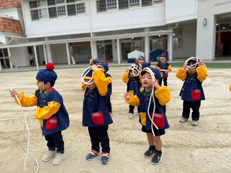 「見て見て、ゴリラ!」「次はライオン!」と先生の動きをまねする姿も見られ❤外ならではの開放感に子どもたちも嬉しそうでした。