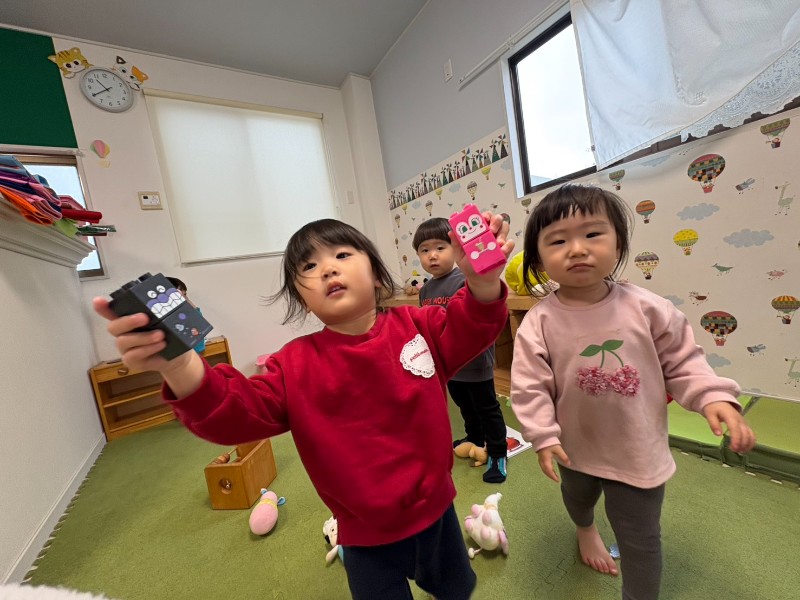 「あった!!」「みて~」アンパンマン、バイキンマン、ドキンちゃん無事に見つかりました❤毎日何気ない遊びが、楽しい遊びに変わっていって楽しいね♪