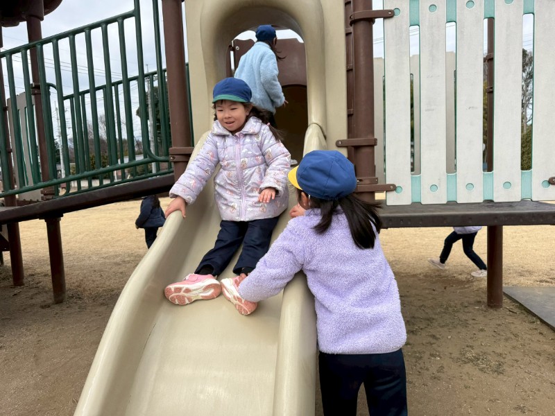 近くの公園でおやつも食べ、たくさん遊びました♬ぱんだ組さんはぞう組さんを見て・・ぞう組さんはぱんだ組さんのお世話をして・・とても充実した一日となりました♡