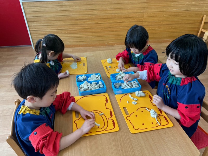 今日はみんなで好きな食べ物を粘土で作ってみました!!一生懸命お料理中・・・