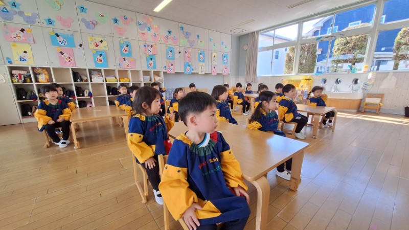 背中をピンと立ててお話を集中して聞けていましたよ♪明日は保育参観かっこいい姿をパパやママに見せようね!《あやか》