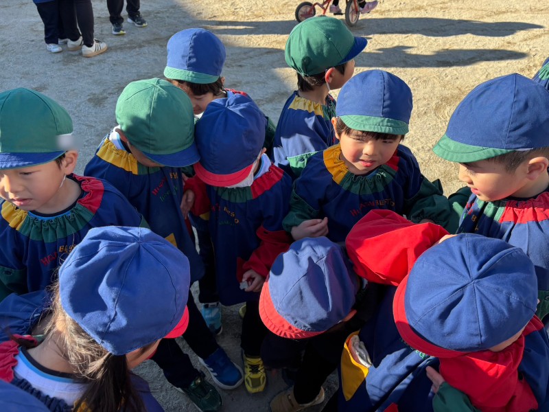 「お外に遊びに行こうー」の声に「わーい!!」「やったー!!」外に出る準備を急いでしていました♪