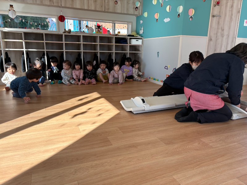月1回の身体測定♪体重計も身長測定器も新しくなり、リラックスして測定。