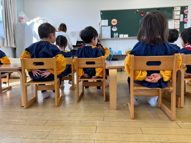 「どんな姿勢がカッコいいかな?」「目はどこを見ようかな?」と意識して、ダンボのお耳でお話をしっかり聞いています!