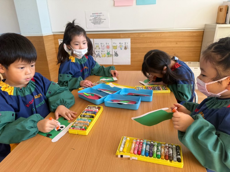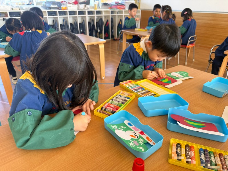 思い思いの雪だるまやクリスマスツリーを描き、お友達同士で見せ合う姿も見られました♬完成まであと少し・・今からクリスマスが楽しみだね❤