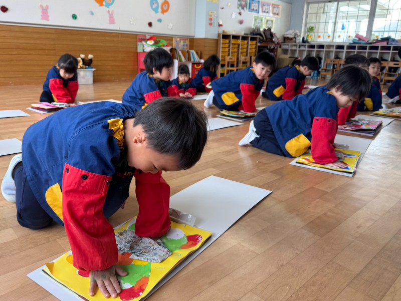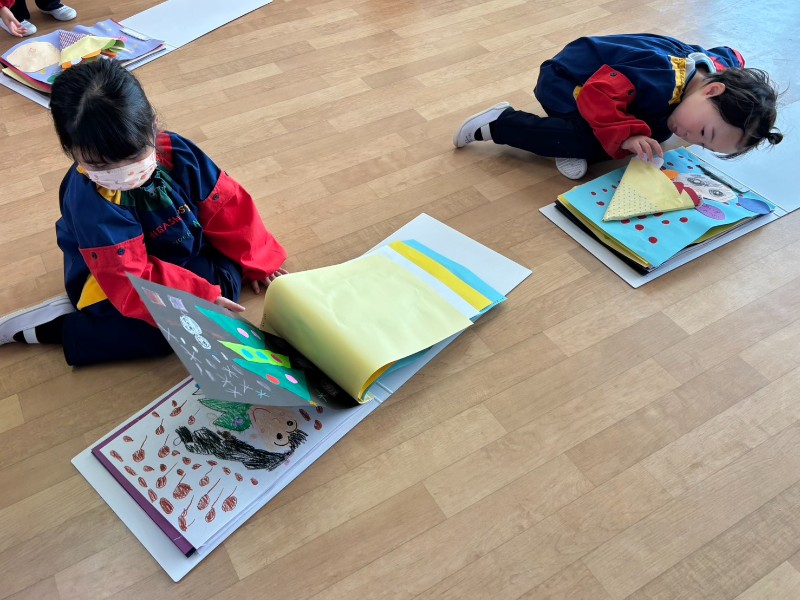 みんなが1年間で製作した沢山の作品・・・「懐かしい・・!」「こんなに製作していたんだね!」「ちょうちょがお気に入り!」とお話しながらする姿が見られました♫《ももか》