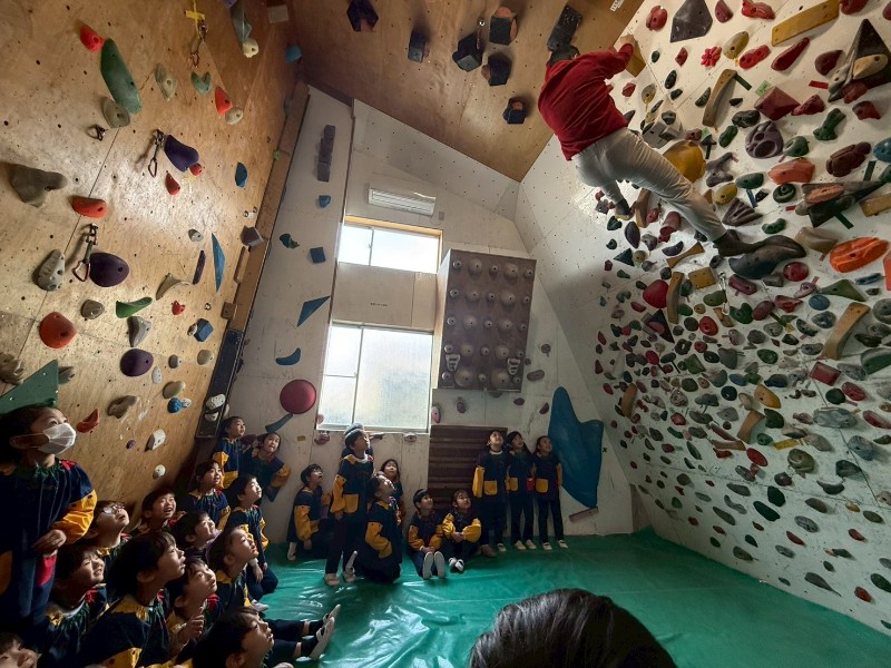 みんながずっと楽しみにしていたさよなら遠足♪そして・・スペシャルゲストにジャンボ先生と大川先生とあや先生も❤初めてのボルダリングにワクワク・ドキドキボルダリング施設の入江さんに登り方やお手本を見せてもらい天井まで登っていく姿にみんな興味津々!!
