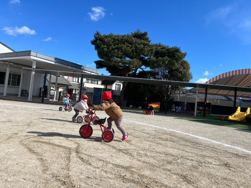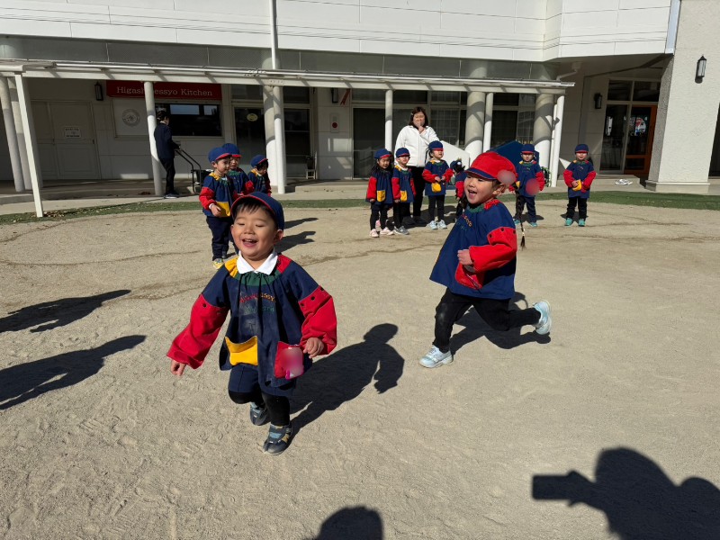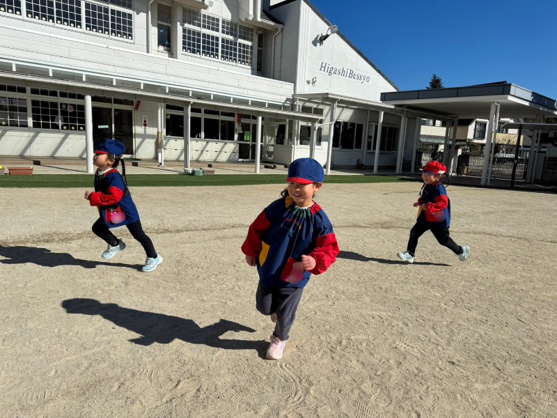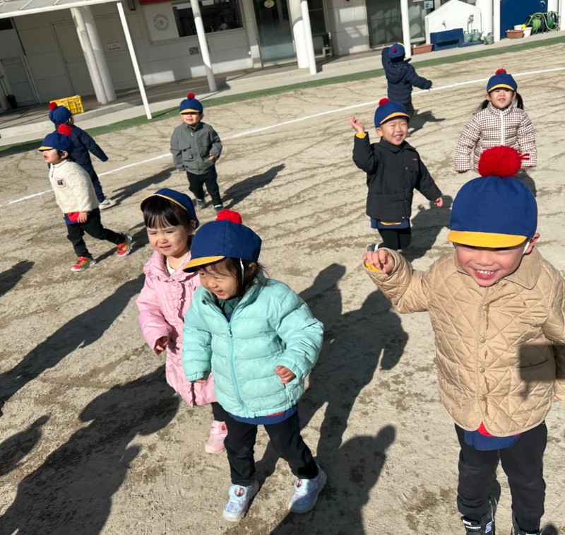 今日は寒さに負けず・・・みんなで鬼ごっこをしました!「鬼から逃げる!!」「捕まらないぞ〜!」と張り切る子どもたち!