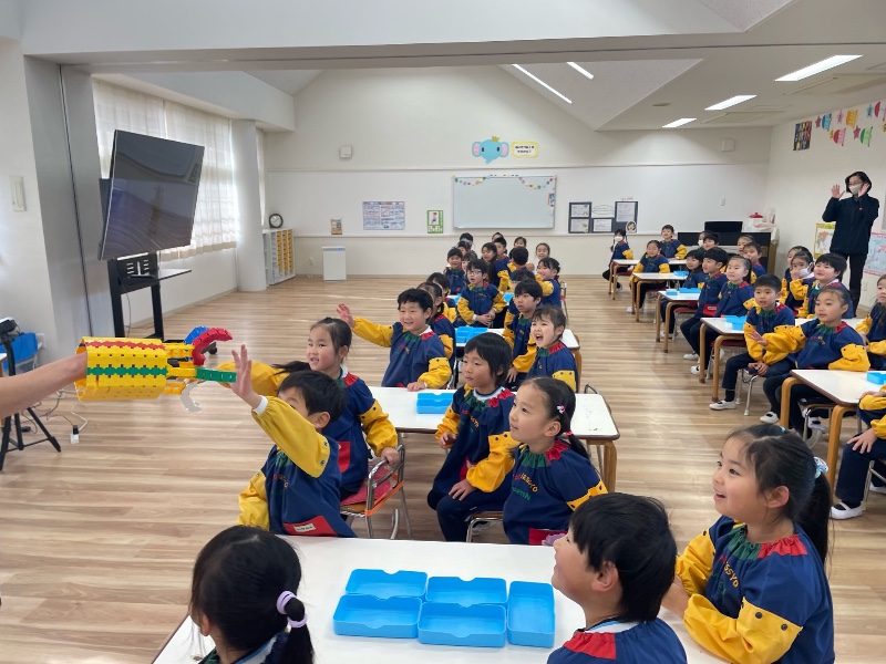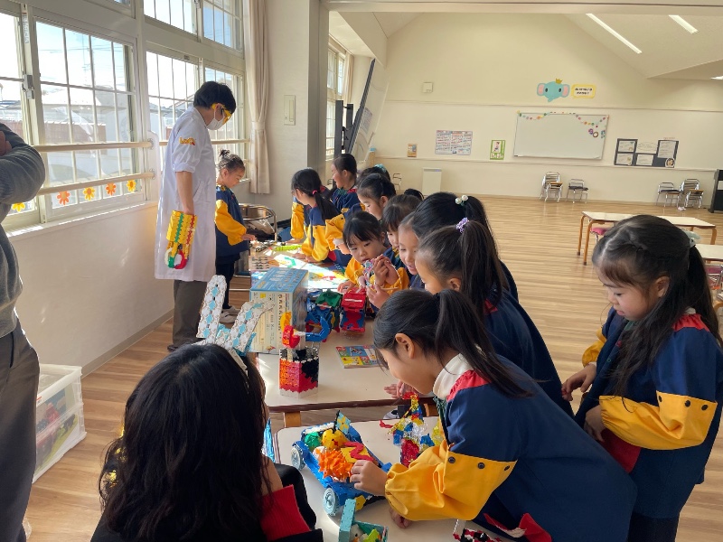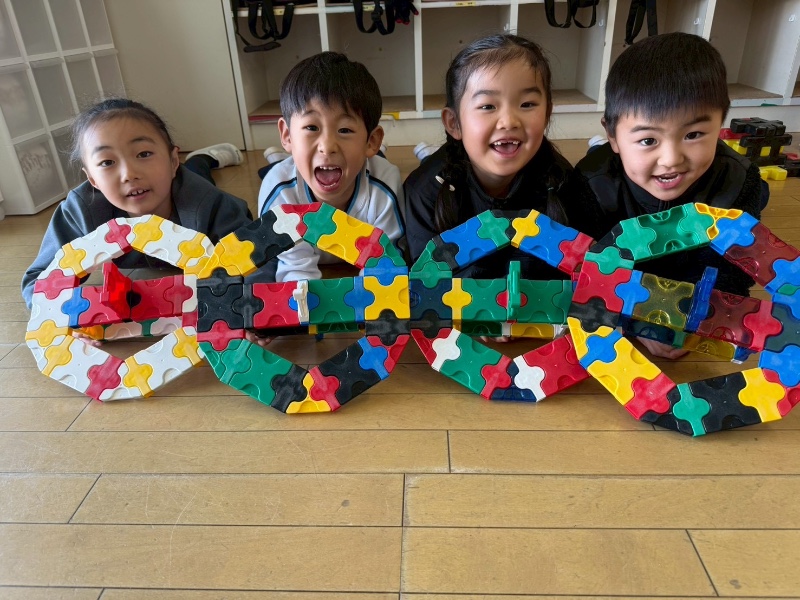 楽しみにしていたLaQ教室!!スマイル幼稚園 園長先生あや先生の紹介で、今回実現しました。日本に8人しかいないLaQ博士!!まずは、パーツの種類を教えてもらったり、沢山の作品を見せてもらうところからスタート!次々に出てくる作品に、子ども達の歓声があがり、終始釘付け。そのあとは、コマ作りにチャレンジ!!集中して取り組んでいました。