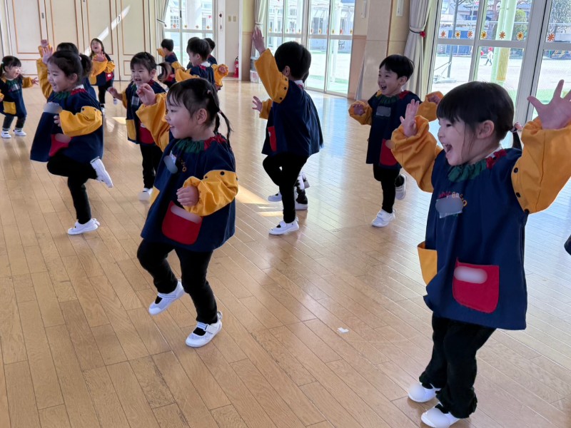 今日はパピー組最後のダンス教室♬最初の頃、ちょっぴり恥ずかしそうに踊るお友達もいましたが今では元気にリズムに合わせて踊る姿がみられます♬