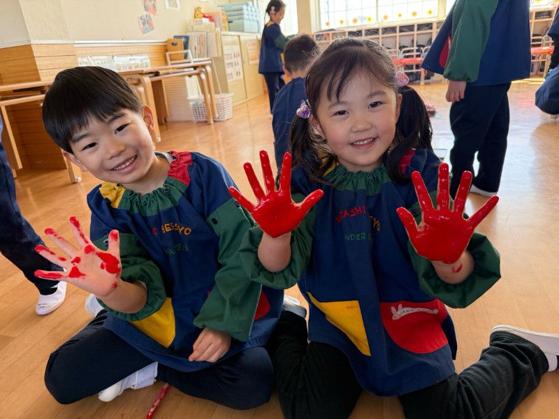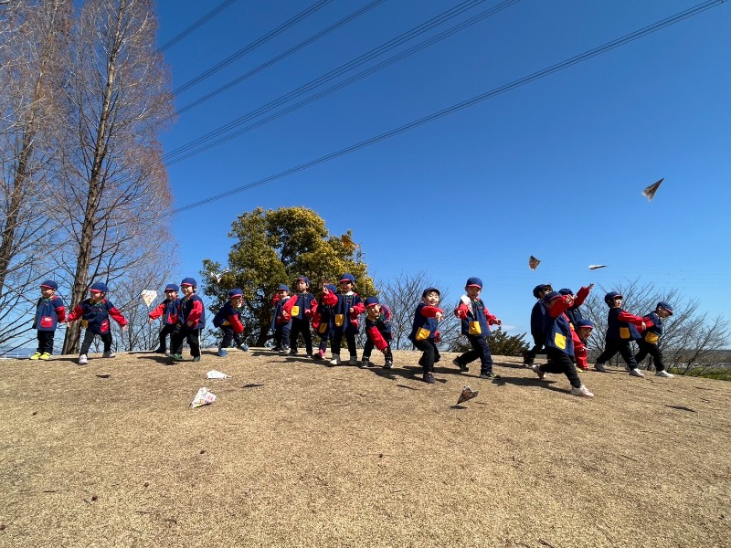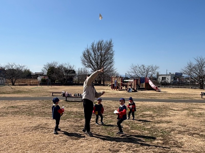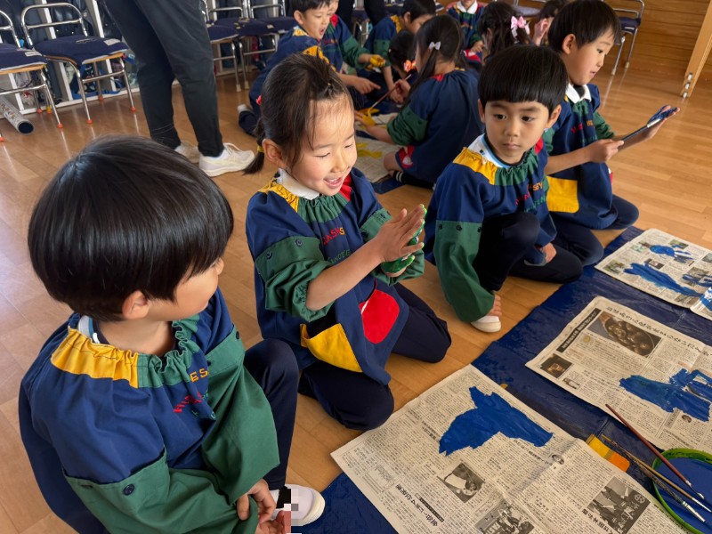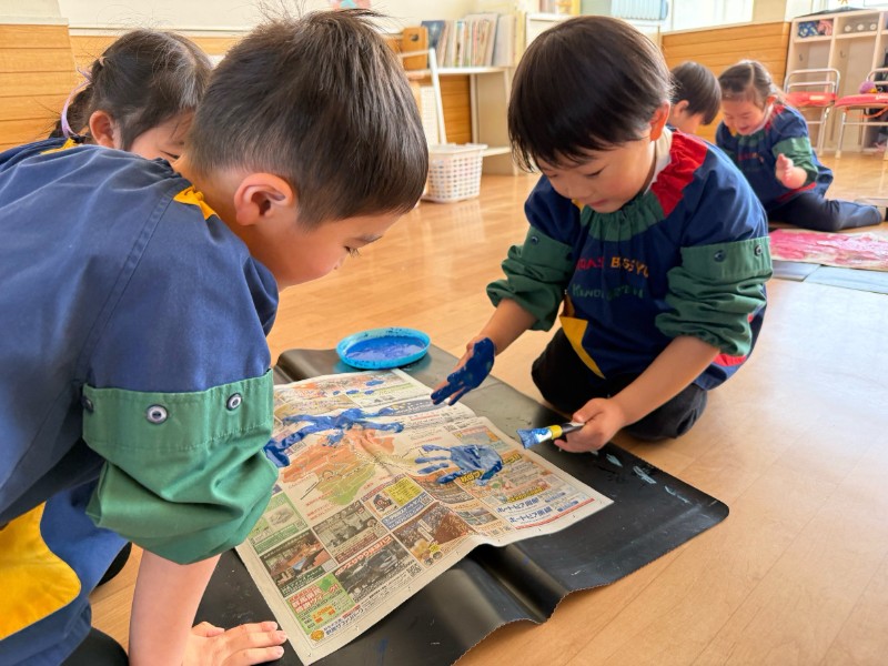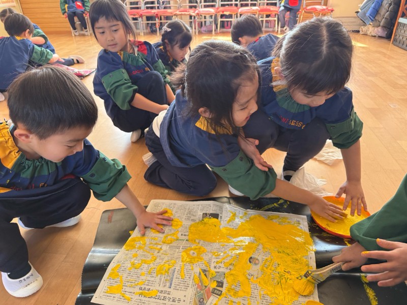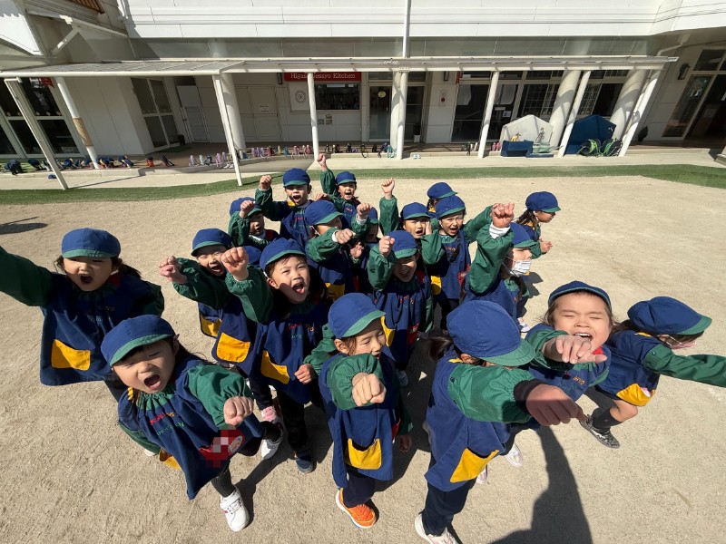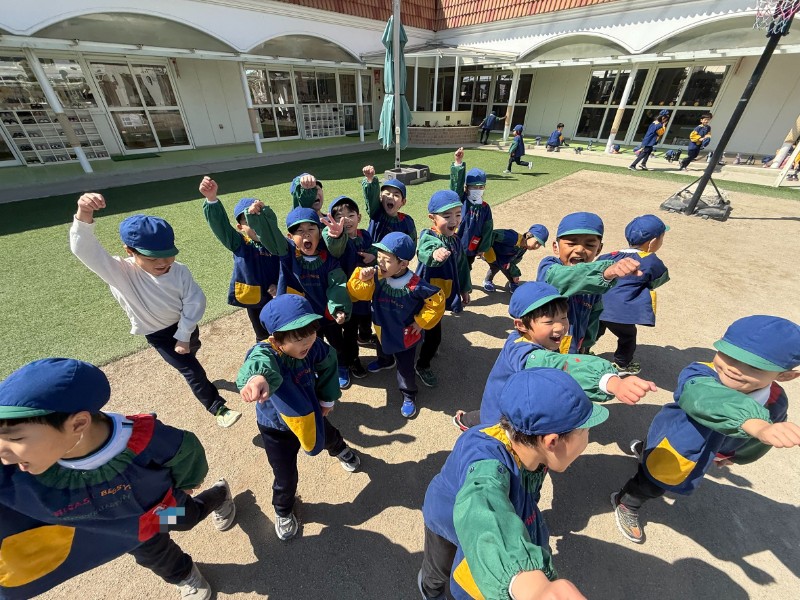 今までとは違う感触に子ども達もワクワク!とても楽しそうに色塗りをしていました♬どんなものが完成するかな・・?楽しみだね♡そして、今日はお天気が良かったので男女別で鬼ごっこ対決!!