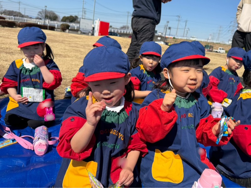 触ったり匂いを嗅いだり・・一面菜の花畑とても素敵でした♪お待ちかねのおやつタイム!!