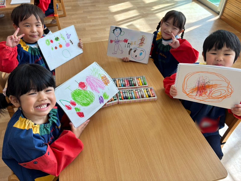 今日は大寒とても風が強く寒い1日でした。そんな日は室内でお絵描きTime♪1年を通してどんどん自分の描きたいものを表現できるようになりお絵描きもとても上手になりました!!!お気に入りの1ページを選んで「はいチーズ!!」