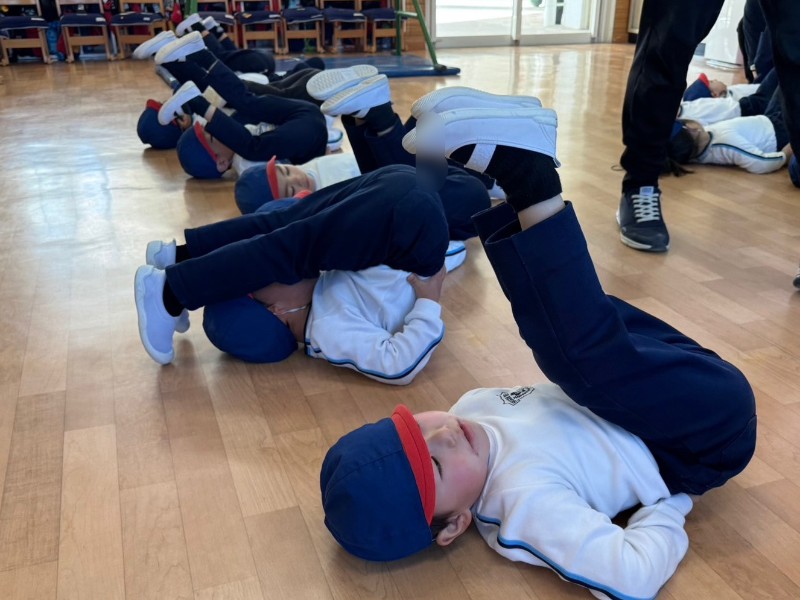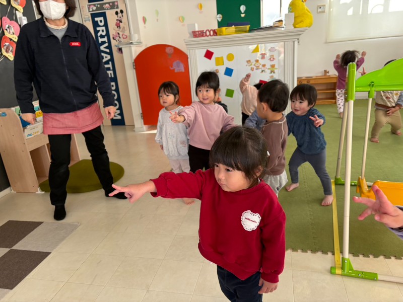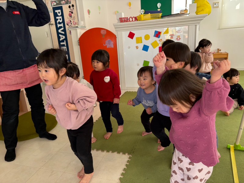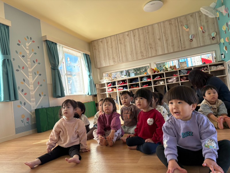 ピアノの音に合わせて、身体をた〜くさん動かしました!「足上げるの難しいね!」「うさぎの音楽だね!」と音を聞いて歌いながらたくさん身体を動かしました❤《すず》