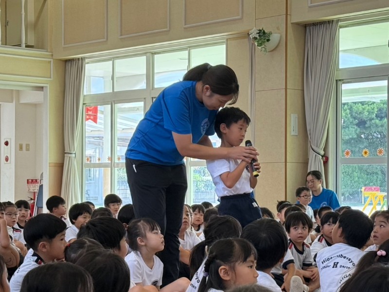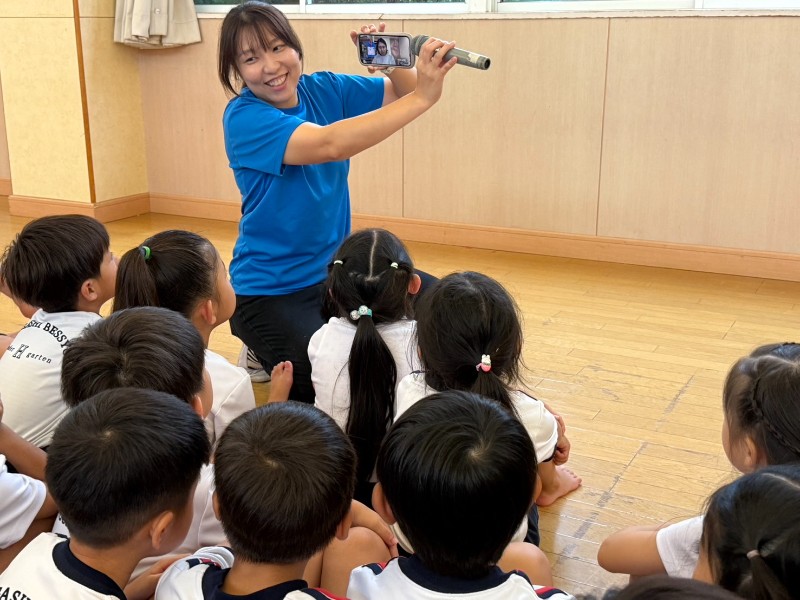 そして、今の自分たちの姿をまゆみ先生に見てもらうと・・・「今までのぞう組さんよりも一番カッコいい!」と誉め言葉を貰いやる気アップ!さらにかっこよくするためには?「心を一つにする」「声を出す」などの課題もありました。課題をふまえてこれからも頑張ろうね♡