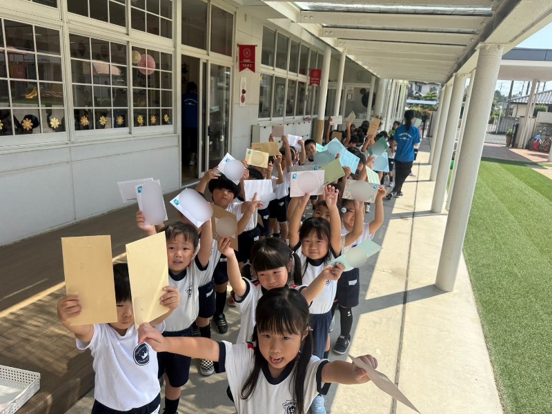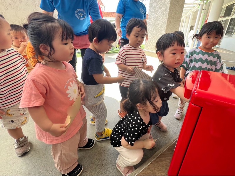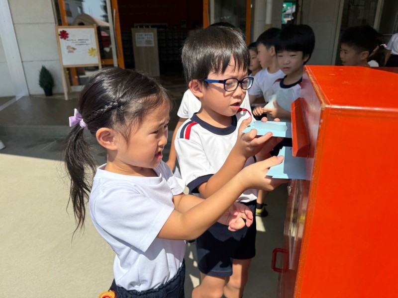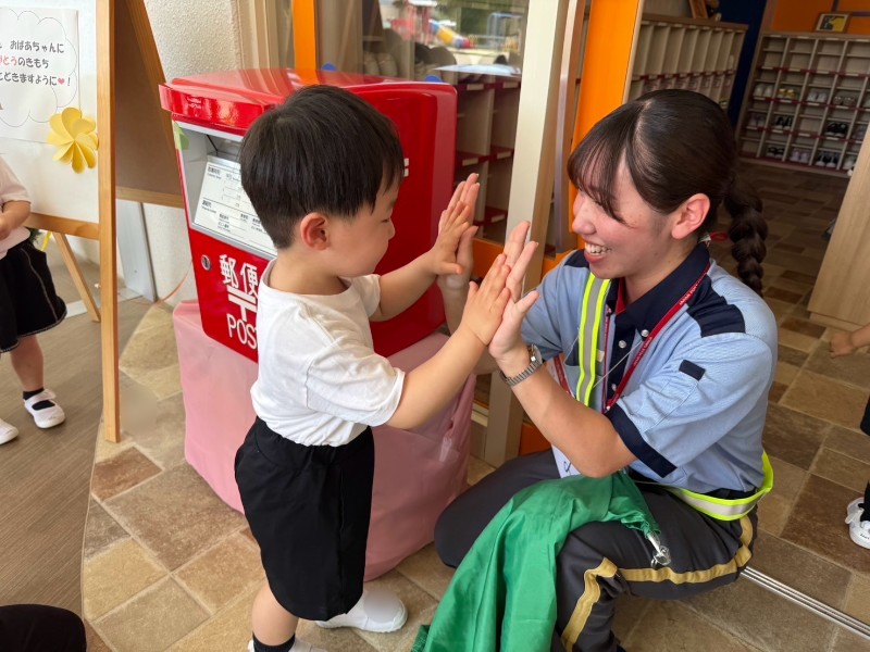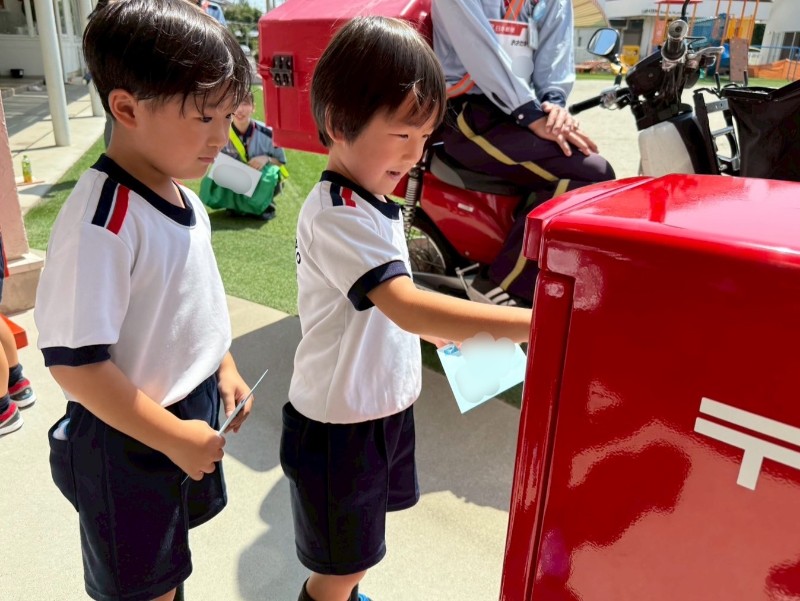 敬老の日までにみんなのお手紙が届きますように…今日は、郵便局員さんが幼稚園に移動ポストを持って来てくれました!