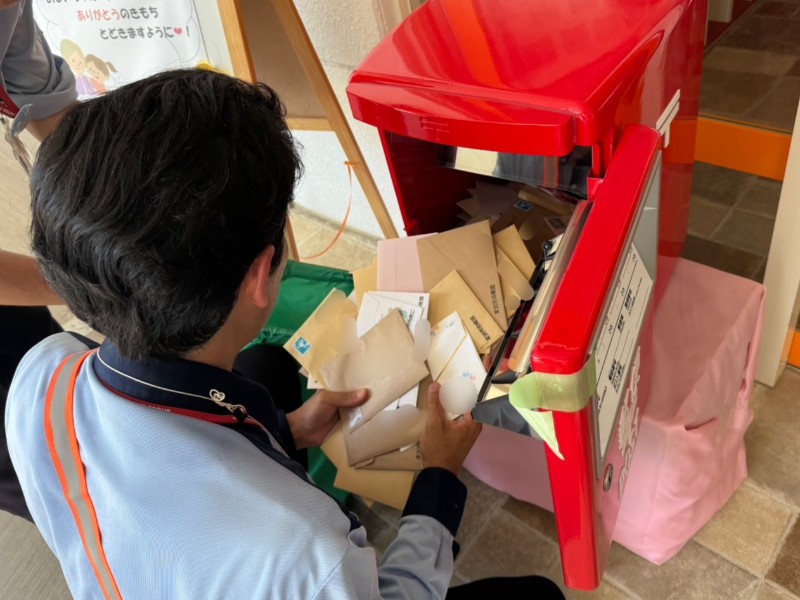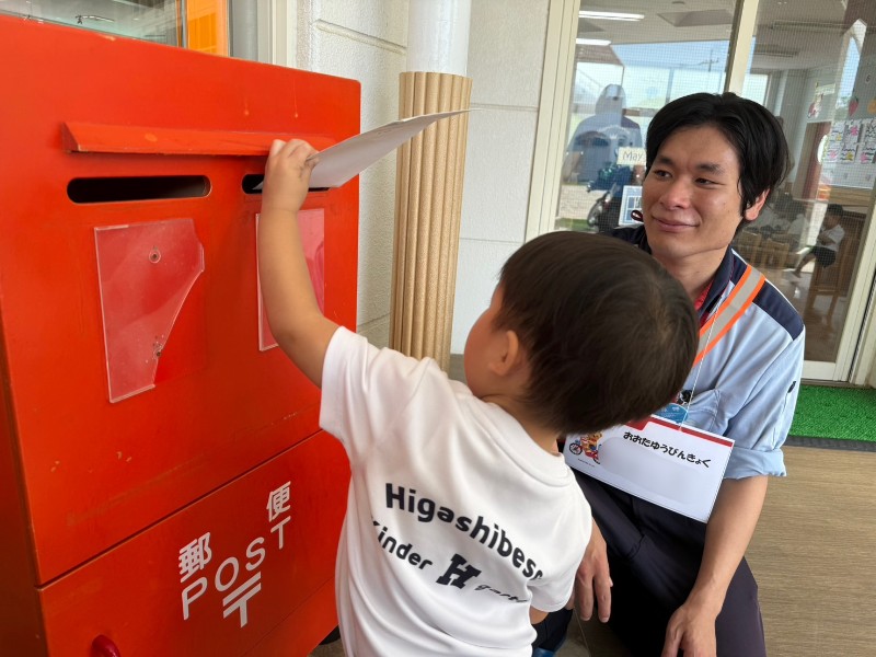 珍しい形や赤い色以外のポストを教えてくれたり、実際にポストの中を見せてくれたり…子ども達も興味津々でした!!