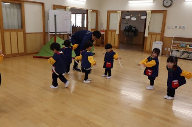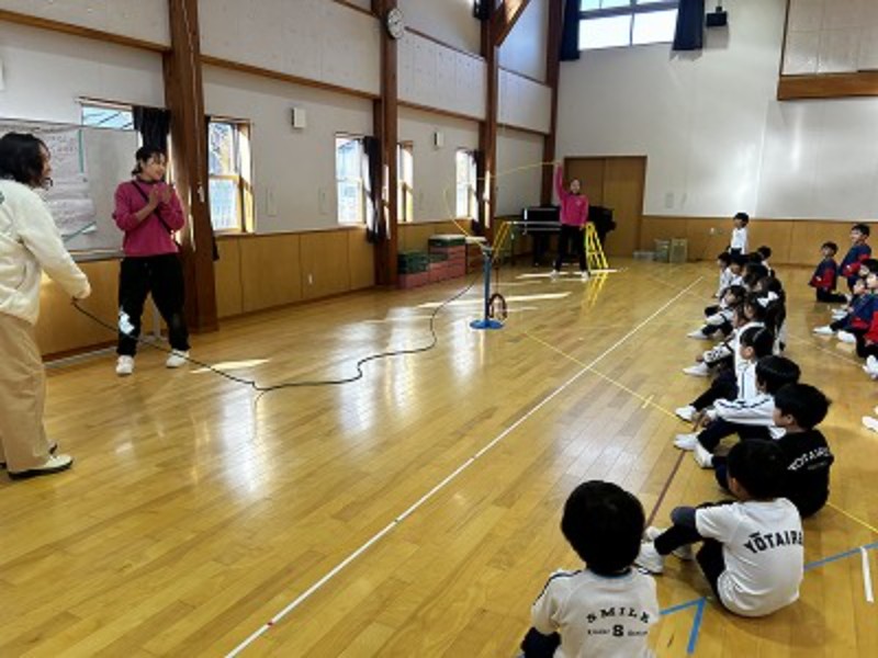 1週間の最終日☆頑張った子ども達へあや先生からとっても嬉しいサプライズプレゼントが!3本の長縄が同時に出来るワクワクいっぱいの長縄ポール!