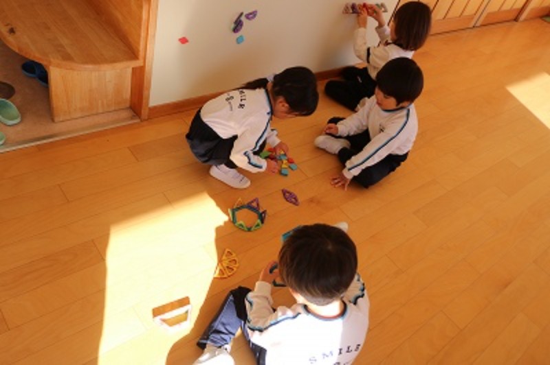子ども達から人気の場所がこちら!マグネットの遊び場です!お友達と一緒にお家を作ったり、綺麗に並べてみたり♬
