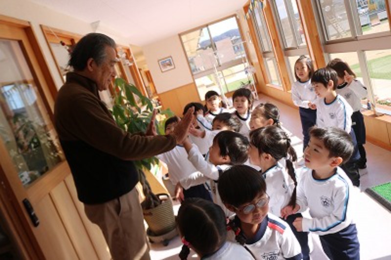 体操教室に行く途中、スペシャルゲストに会えました★誰かというと・・・理事長先生です!!子ども達も嬉しそうに「おはようございます!」と大きな声で挨拶をして、みんなでハイタッチ♪