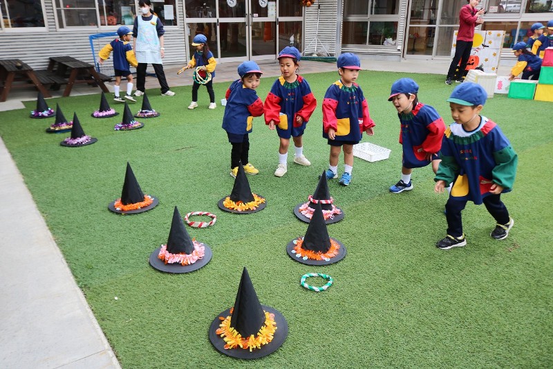 ★Happy Halloween★スマイル幼稚園のハロウィンパーティーは先日終わりましたが10/31はハロウィン当日♪ハロウィン当日も楽しんじゃおう!と今日はハロウィンのゲームやプチ仮装をして朝遊びを楽しみました☺