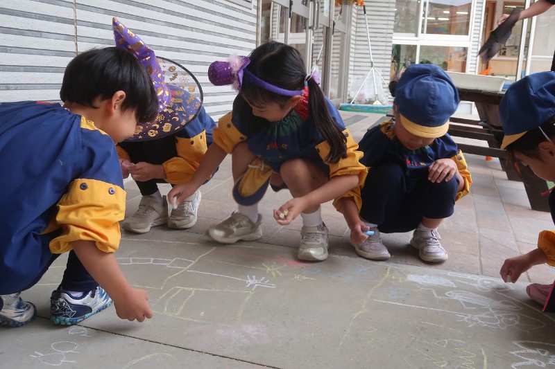 そしてなんと今日は特別!!チョークを使って幼稚園のコンクリートの部分にいたずらお絵描きをしました♡