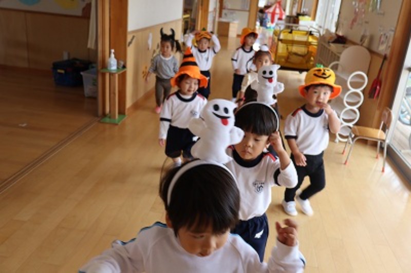 今日はハロウィン★午前中のおやつに食べるお菓子を貰いにLet’s Go!「トリックオアトリート!」魔女に変身したあや先生からお菓子を貰いました。