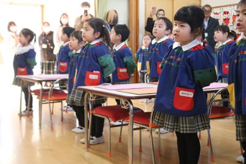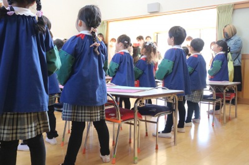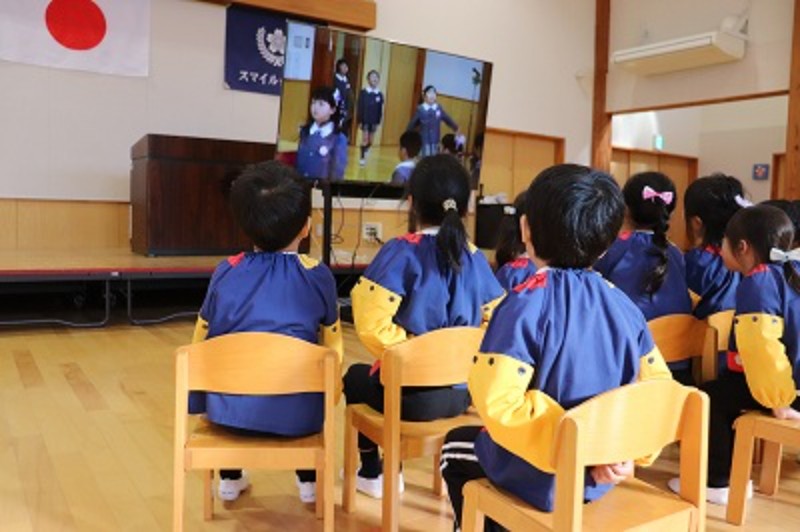 ”憧れの人を見て学ぶ”今日は、昨年度の卒園生の卒園式の映像を見てから練習を行うことにしました!返事の仕方、姿勢、発表等…見たことを学びに変え、早速練習に生かそうとする子どもの姿もみられました☆