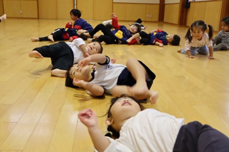 中に入ったり、周りで揺らしてみたり色々な遊び方をしていましたね♪最後は合流したうさぎ組さんと一緒にリトミック♪