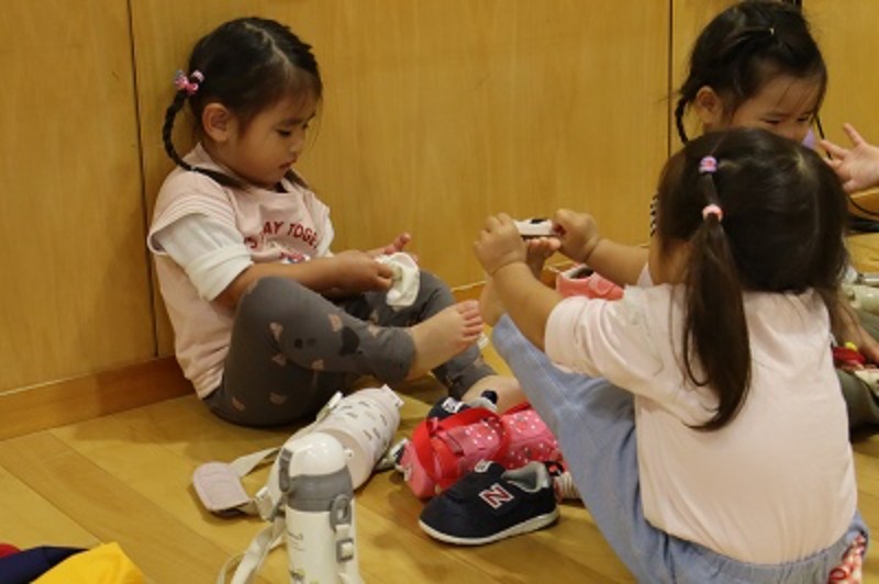 たくさん体を動かして遊んだ一日でしたね★《荻原》P.S.靴下頑張って履けるよ♪まずはチャレンジ!裏っ返しなおせるかな?