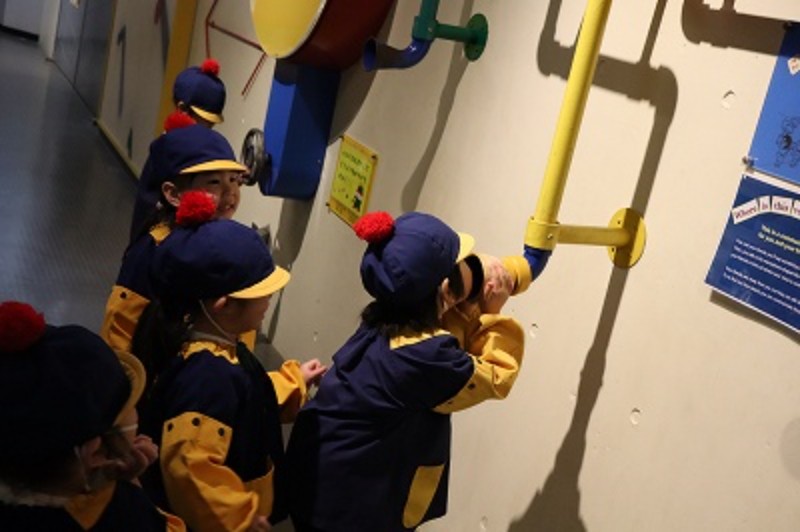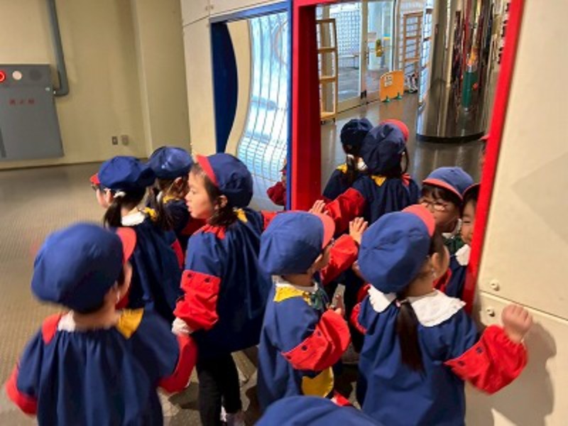 今日はお楽しみバスハイクの日!バスに乗ってこどもの国に行ってきました★室内に入り、しっかりと挨拶をしてから遊びましたよ!不思議な鏡に夢中になっていたり、遠くにいるお友達に声が届く仕掛けに驚いていたり・・・♬