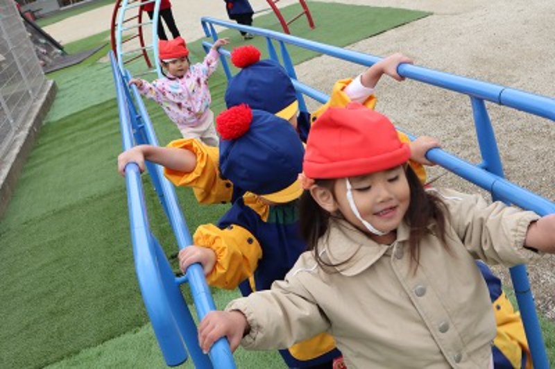 どんより雲が広がっていましたが「あ!少し太陽が見えた」大好きな大型遊具や太鼓橋などのエリアで遊びました♪