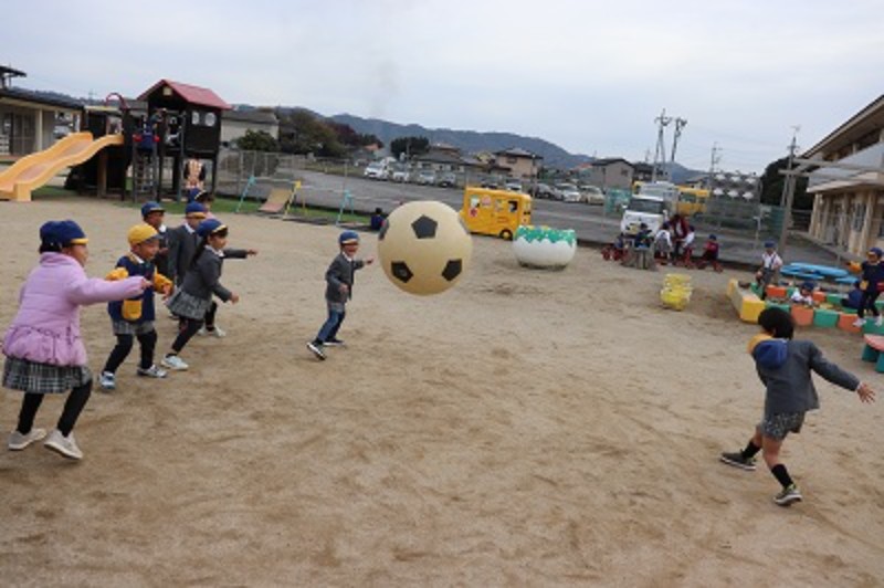 空が雲に覆われ少し寒さが厳しく感じた朝でしたが、子ども達は変わらず元気!ボール当てゲームをしたり、ぱんだ組さんと鬼ごっこをしたりと園庭をおもいきり使って遊びました☆