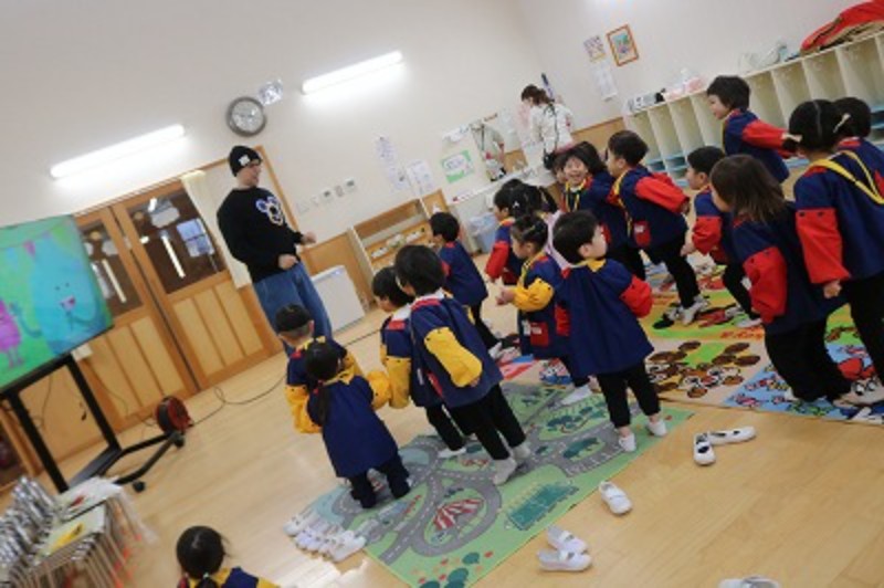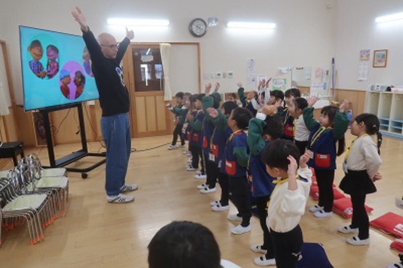 毎週火曜日は英語教室!今日から3学期の英語がスタートしました!2学期にやっていたものの他に新しい歌も登場!ボブ先生とたくさん身体を動かしながら楽しく英語に参加できました!