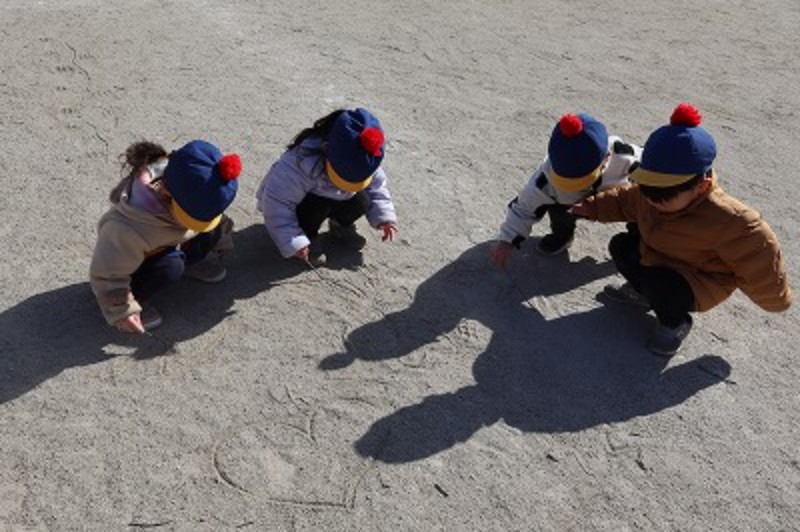 ふと下を見て見ると、木の枝がパラパラ落ちていました。強い風で木から落ちてきたのかな?木の枝もアイテムに変身です。木の枝で地面にお絵描きtime♡