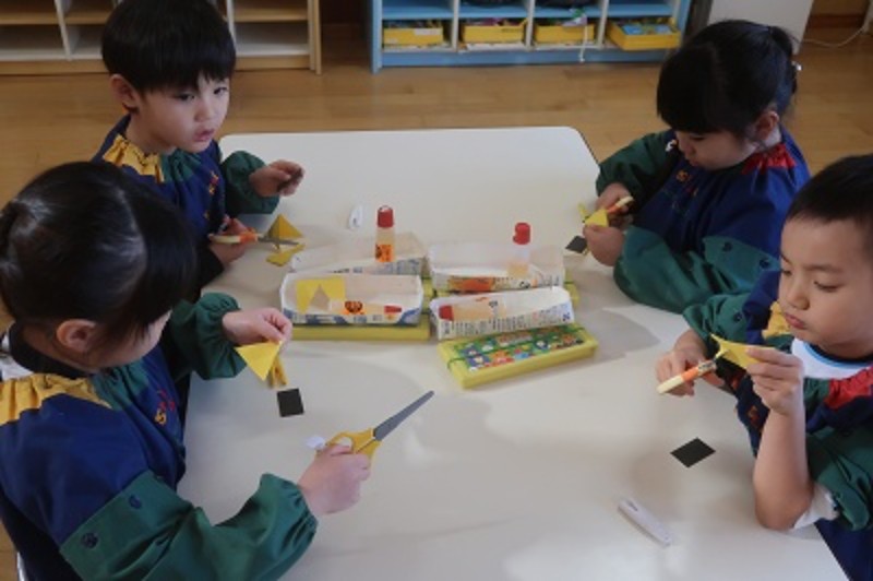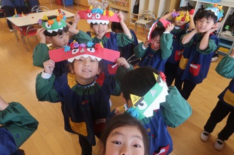 この製作をするにあたり、鬼の色の意味も話しをしました。その意味を聞いて自分はどの色がいいかな?考えて選んで製作!これで節分へ向けて準備ができましたね!《腰塚》