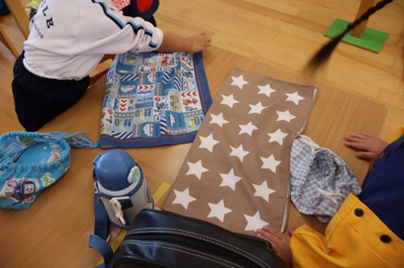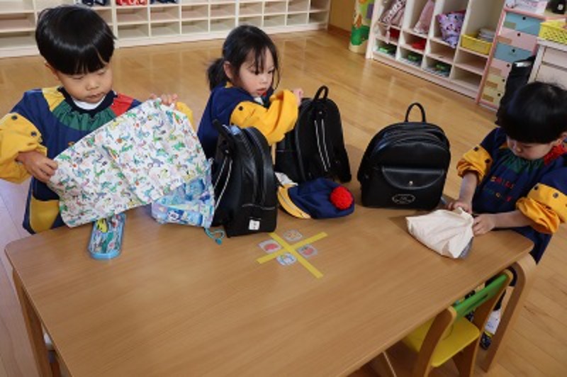 「自分でチャレンジ♪」入園当初から準備や片付け・所持品の整理等まずは教えてもらいながらスタート!