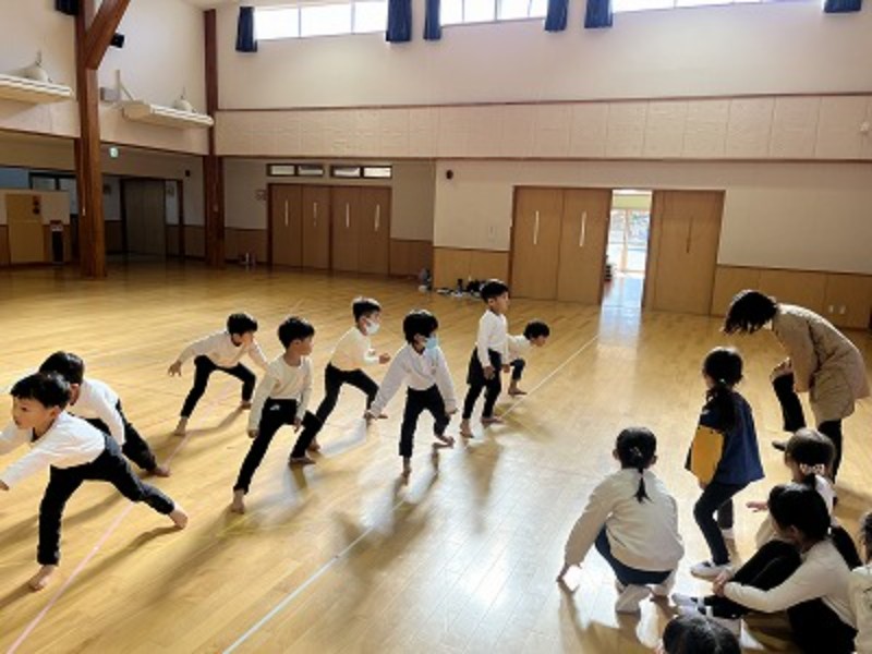 11月に入り、進めている発表会の練習☆毎日気合十分で練習に参加していますが、今日はあや先生からたくさんアドバイスをもらった子ども達!その名も”またわり”!日本の代表的なスポーツ、柔道や相撲などでも行われている動作ですが男の子の練習にも欠かせない動きになります!「お家でも練習してくる!」と意気込んでいる子ども達なので是非お話を聞いてみて下さいね♡
