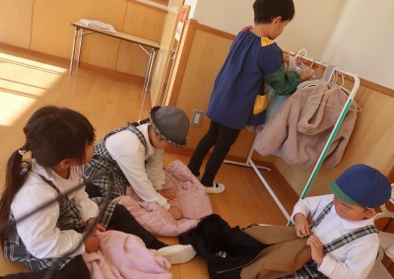 ハンガーをどうやったらかけられるようになるか最初の方は苦戦をしていましたが今ではチャックを途中まで上げ、ハンガーを入れてから最後まで閉める!この方法でみんな出来るようになりました☆寒い日も増えているので気温を見て衣服の調節をお願いします!《腰塚》