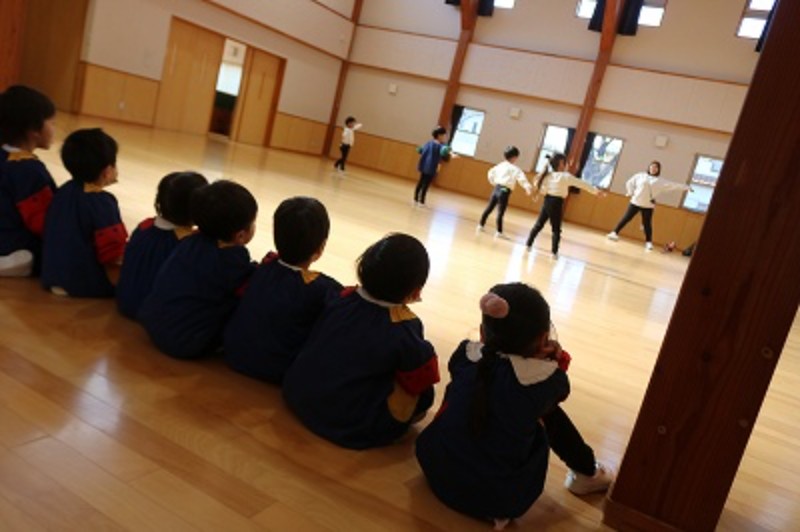 発表会の練習も始まり、毎日一生懸命頑張っている子ども達★今日はぱんだ組さんのダンスを見てお勉強しました!背中や指先はどうなっているかな?子ども達も夢中になって見ていましたよ♬