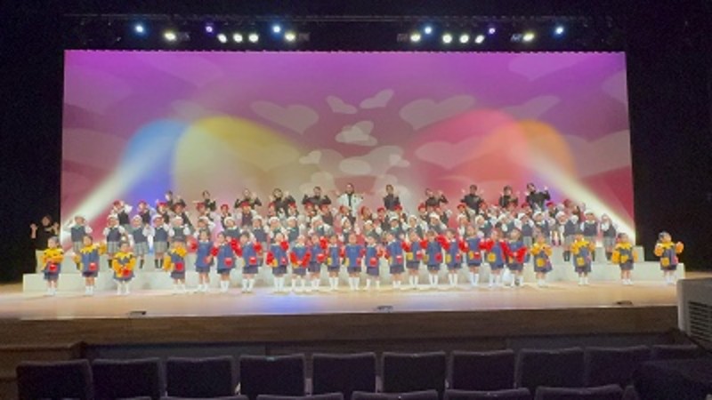 年末にインフルエンザの猛威に振るわれ学年閉鎖もあり、不安や焦りもありましたが無事に発表会成功!!スマイル幼稚園らしい“SMILE”いっぱいの会場となりました。初めての発表会に参加した未満児クラス1歳児キティ&2歳児パピー組ならではの可愛さに会場が笑顔で包まれました♪