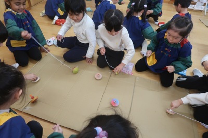 最近子ども達が夢中になっているコマ!前まで準備が終わると絵本を読んでいたのですが最近では準備が終わると「コマやってもいい??」と持ってくる子ども達!2学期の時よりも紐の巻き方が上手になっていたり回っている時間が長くなってきました!