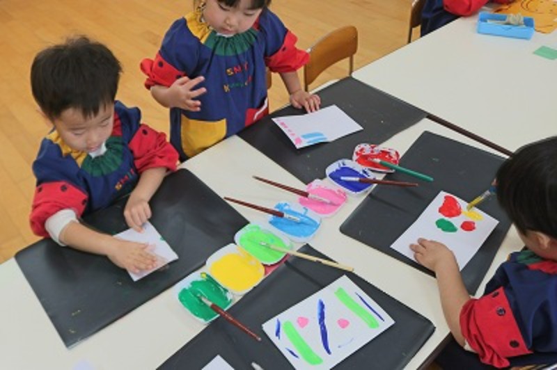 1週間のスタート!今日はお当番表の製作をしました★好きな色を選び、「デカルコマニー」にチャレンジ!