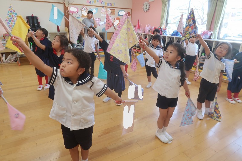 夏休み中旗の製作のご協力ありがとうございました!!今日から練習がはじめまりました!まずは旗の持ち方から練習♬旗を持つ手はまっすぐにして目線は上を見て!どうもったらかっこいいかな?とお話をしながら練習をしましたよ☆旗を持った子ども達はやる気いっぱいです!ママ・パパの作ってくれた愛情たっぷりの旗を使って明日も練習していきたいと思います☺《腰塚》