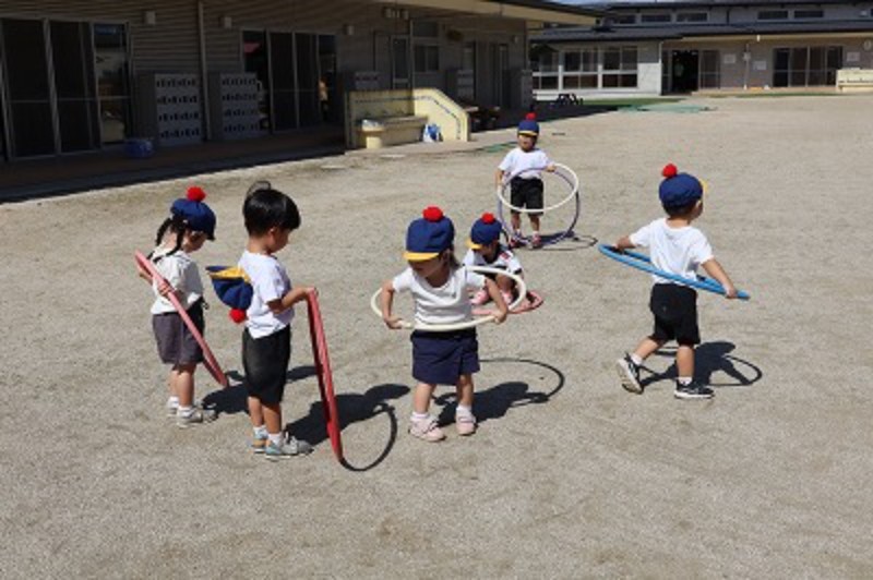 道中たくさんの発見がありましたね☺〈パピー組〉太陽の光をたっぷり浴びながらミニミニサーキットやフラフープ電車